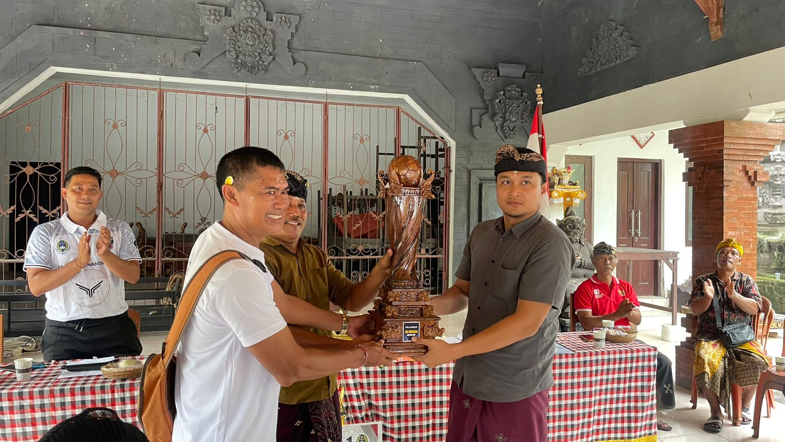 JEMBRANA, MediaBaliNews – Setelah berhasil meraih juara I pada ajang sepak bola Liga Bupati Cup 2025, tim PS Garuda menyerahkan piala kemenangan kepada Lurah Dauhwaru yang berlangsung di Balai Lingkungan Dauhwaru, Kecamatan Jembrana, Kabupaten Jembrana, Kamis (8/1/2025).