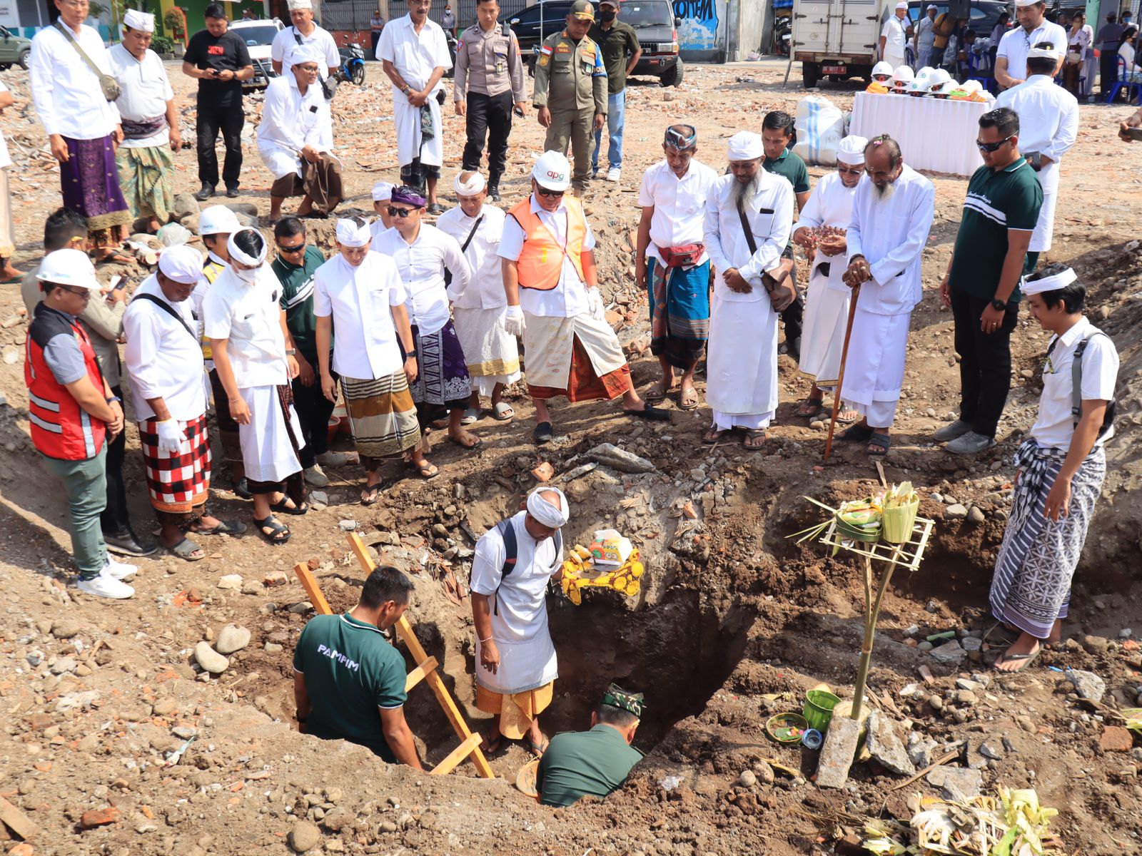 JEMBRANA, MediaBaliNews – Tahapan revitalisasi gedung baru Pasar Umum Negara (PUN) telah dimulai dengan prosesi Pengeruakan (upacara memulai pembangunan baru) yang dipimpin secara langsung oleh Ida pedanda Gede Ketut Putra Kemenuh, Griya Kemenuh Suka Taman Ketugtug, Loloan Timur pada rahina Redite Umanis Merakih, Minggu (17/9).