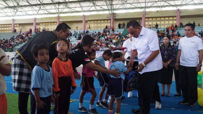 JEMBRANA, MediaBaliNews – Sebanyak 1.800 anak usia dini yang terdiri dari anak-anak PAUD (Pendidikan Anak Usia Dini) dan Sekolah Dasar fase awal mengikuti kegiatan Gebyar Anak Usia Dini yang diselenggarakan oleh oleh Pemerintah Kabupaten Jembrana di GOR Kresna Jvara, Jembrana, Rabu (18/9).