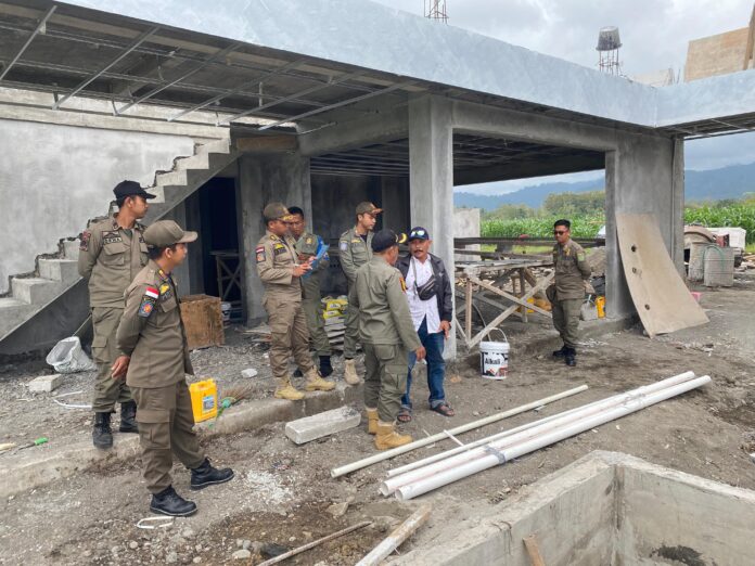 JEMBRANA, MediaBaliNews – Berdasarkan Peraturan Daerah Kabupaten Jembrana Nomor 3 Tahun 2017 tentang Bangunan Gedung, Satuan Polisi Pamong Praja (Satpol PP) Kabupaten Jembrana kembali mentertibkan sebuah bangunan tanpa izin di Desa Medewi, Kecamatan Mendoyo, Jembrana, Senin (24/6).
