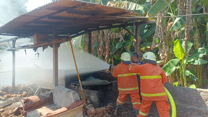 Setibanya dilokasi kejadian, petugas Damkar Jembrana lantas melakukan pemadaman api yang melahap tempat usaha pengopenan kelapa dengan luas 3 x 8 m².