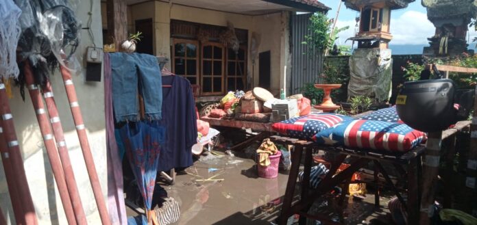 Akibat kejadian tersebut, imbuh Desta, semua pakaian beserta seisi rumahnya terendam air, alat elektronik termasuk perabotan rumah tangga beserta dagangannya terendam banjir. “Di Banjar Tembles yang parah ada 2 KK. Kami juga sudah memberikan bantuan berupa kamben dikarenakan pakaiannya semua basah, dari PBPD juga sudah memberikan selimut. Dan hari ini kami mengerahkan tim medis dari Puskesmas untuk berkunjung kesana dikarenakan ada salah satu warga yang sakit,” tandasnya.