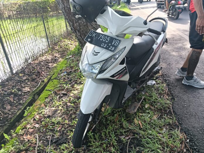 Setelah tersenggol bagian depan kanan kendaraan Honda Brio, pengendara motor kemudian oleng ke kanan dari arah timur dan menabrak pohon perindang yang sudah mati.