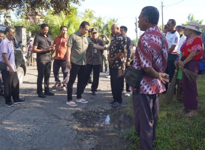 JEMBRANA, MediaBaliNews – Bupati Jembrana I Made Kembang Hartawan melakukan peninjauan langsung terhadap kondisi infrastruktur jalan rusak di Desa Baluk pada Selasa (14/4).