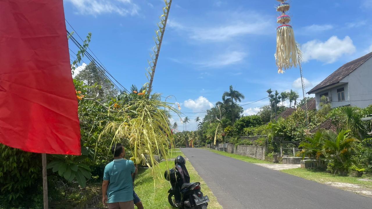 JEMBRANA, MediaBaliNews – Menyambut Hari Raya Natal, warga Banjar Parwatasari, Desa Ekasari, Kecamatan Melaya, Kabupaten Jembrana, mendirikan penjor di sepanjang jalan desa, Rabu (24/12/2025).