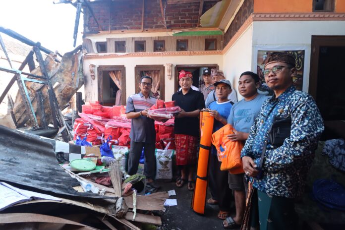 Didampingi Kepala Dinas Sosial I Gusti Bagus Ketut Oka Parwata dan BPBD Jembrana , Wabut Ipat memberikan bantuan berupa paket sembako, makanan jadi, alat kebersihan keluarga dan Kelengkapan tidur sebagai bentuk dukungan Pemerintah Kabupaten Jembrana kepada warganya yang terkena musibah.